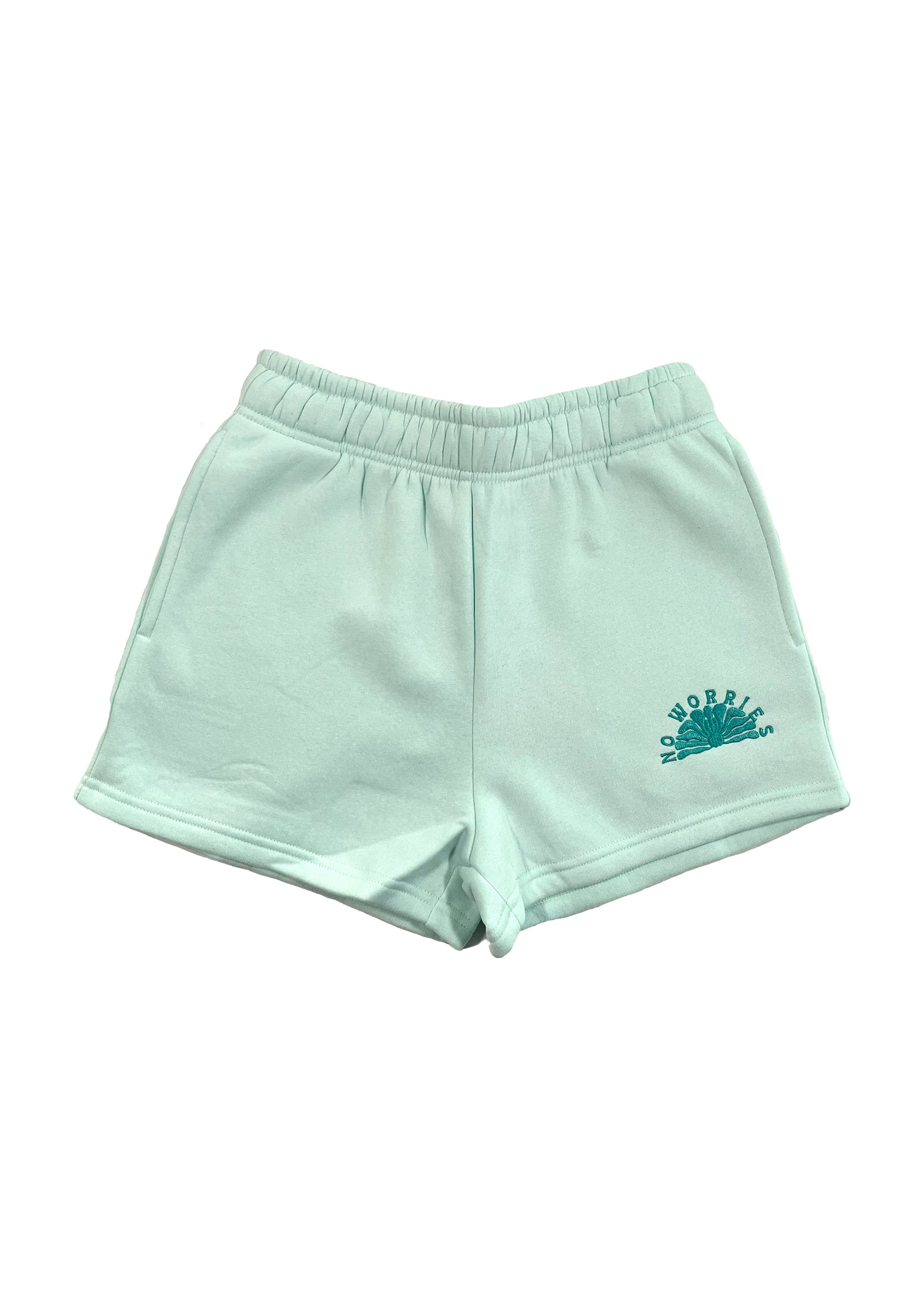 The Coastline Shorts, featuring our signature “NO WORRIES” rising sun embroidery.