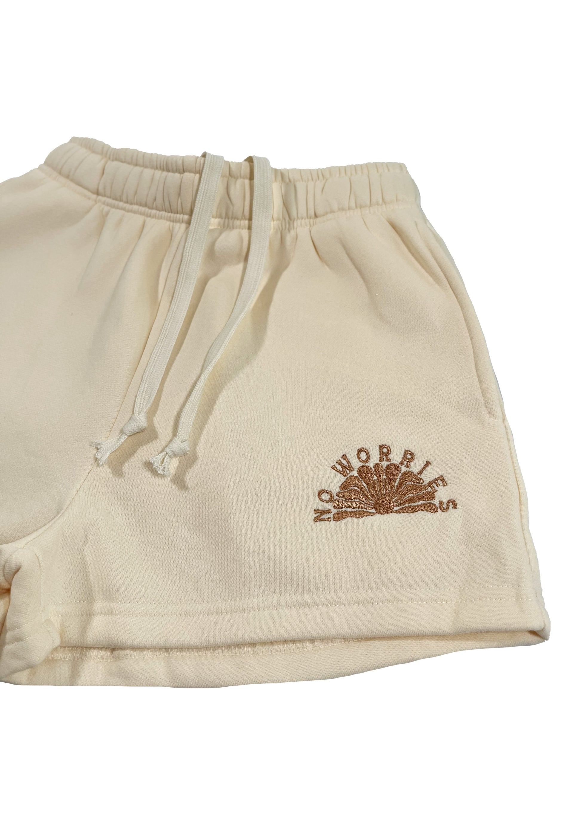 The Coastline Shorts, featuring our signature “NO WORRIES” rising sun embroidery.