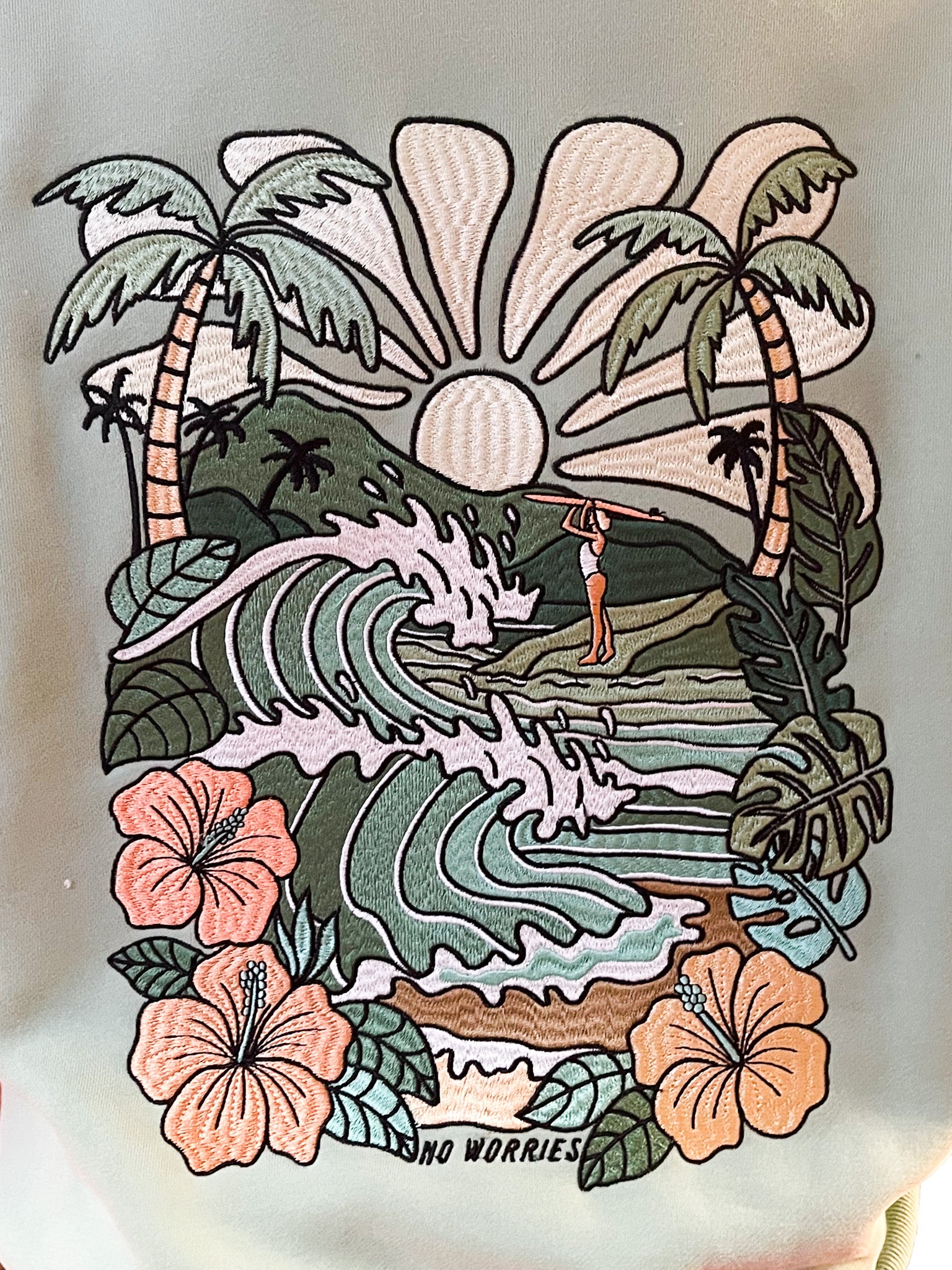 Rolling waves, swaying palms, and golden skies -Sea Green is a tropical surf daydream.