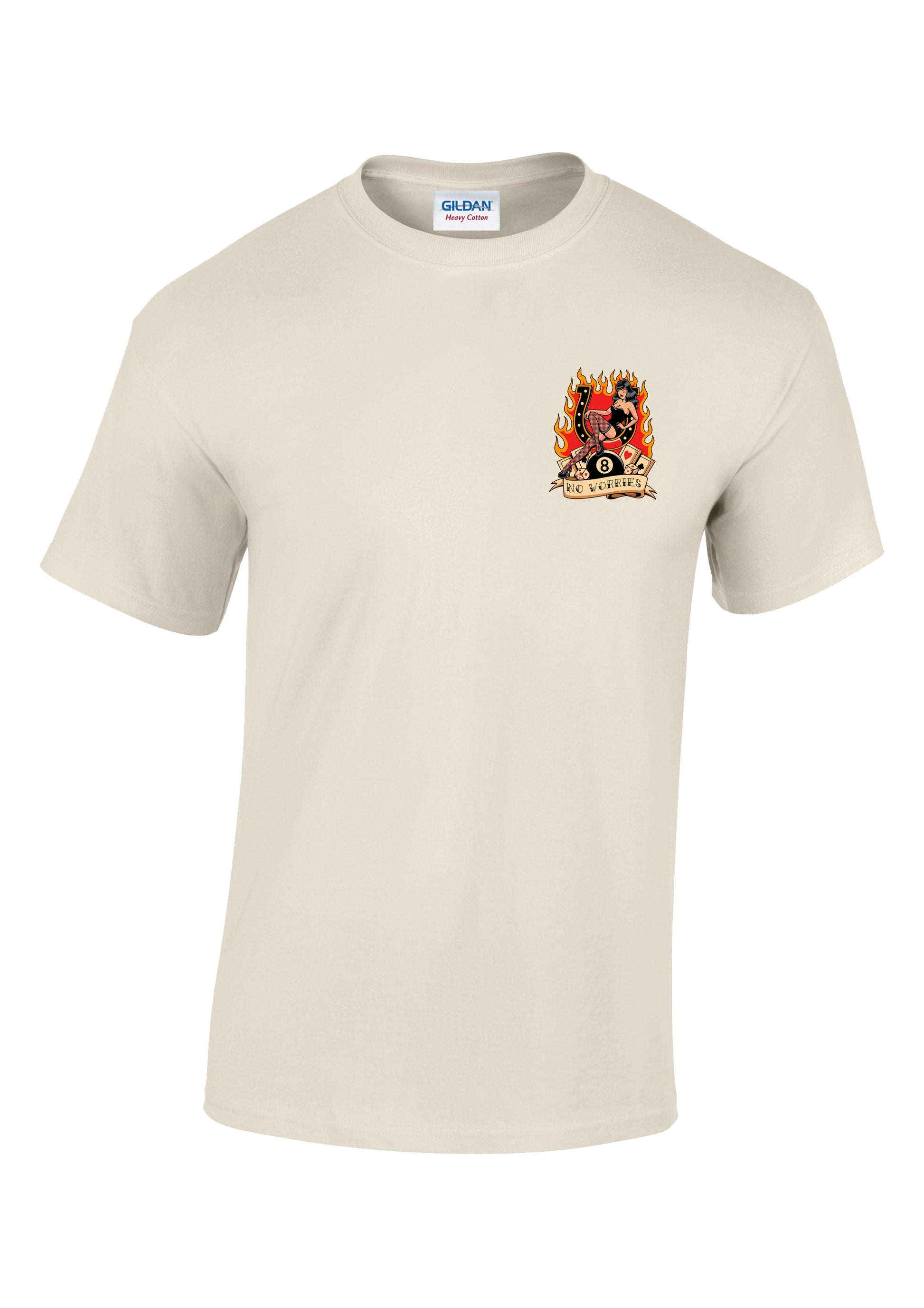Featuring a large back print and small front left chest print. Hand printed in store and designed by us in collaboration with graphic designers.