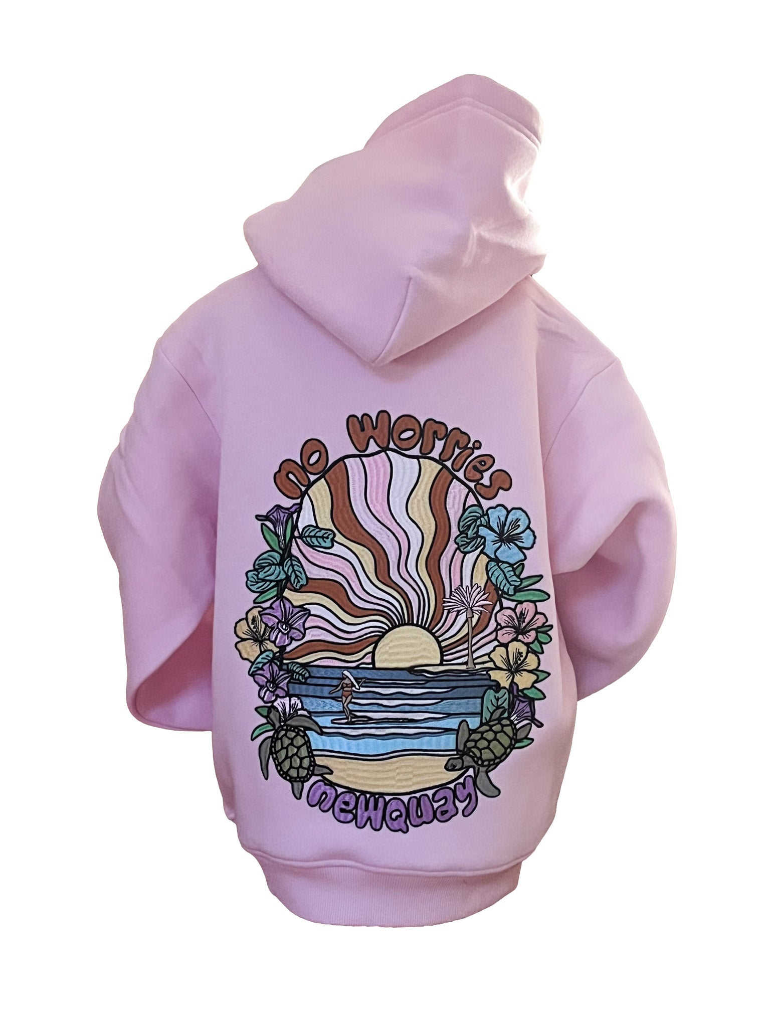 The beauty of just going with the flow -Turtle Drift blends pastel sunsets, sea turtles, and flowing waves in a design that’s playful yet serene